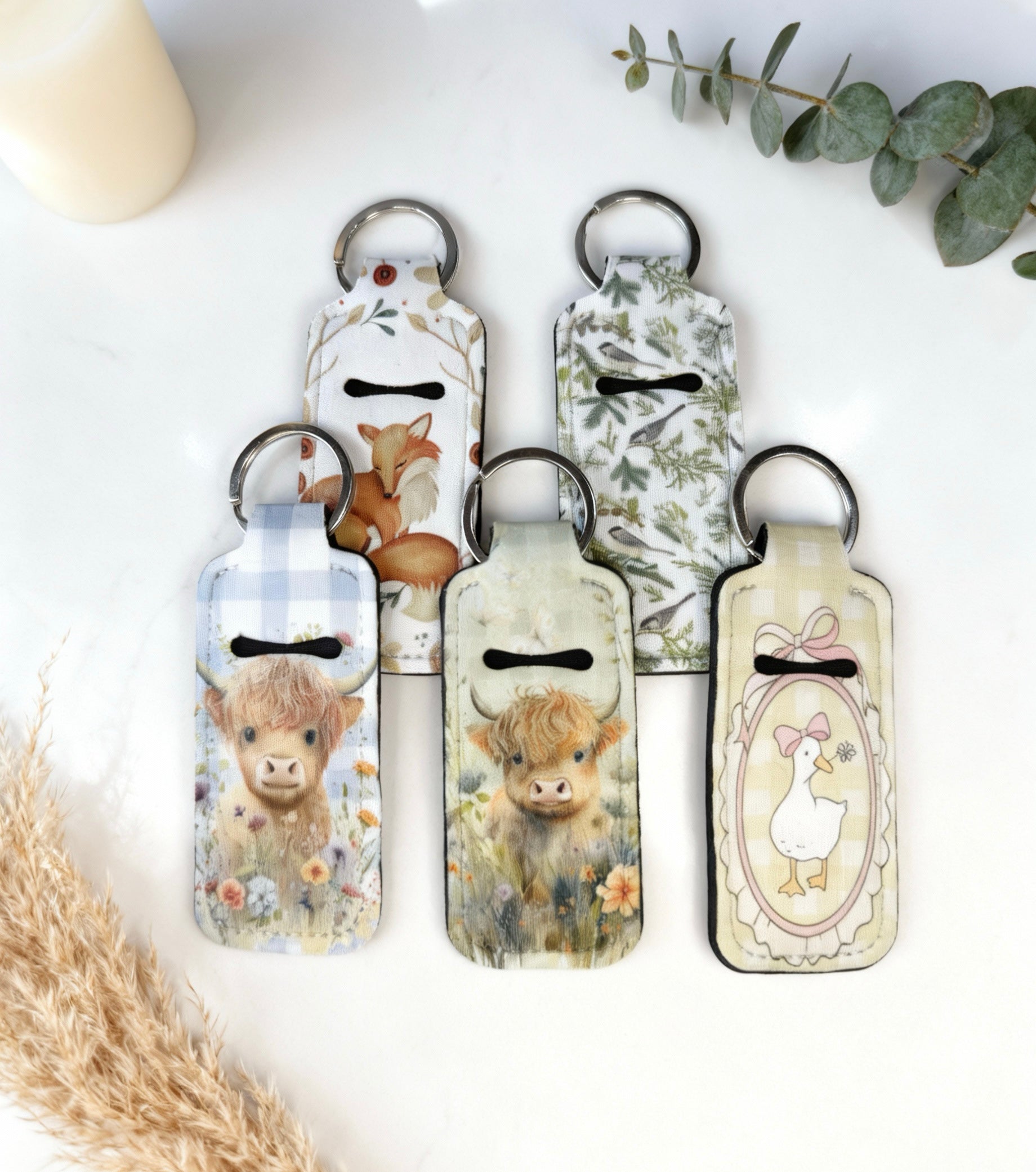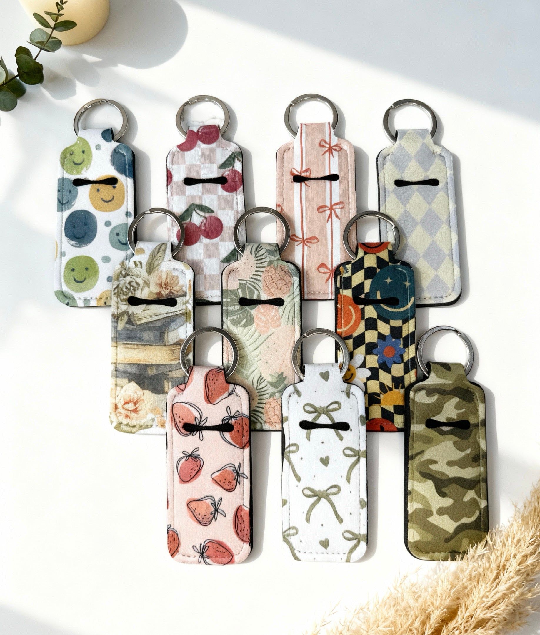 Say goodbye to digging through your bag for lip balm! This sublimated chapstick holder keychain is a fun and functional accessory designed to keep your favorite lip balm easy to find and always within reach. Clip it onto your keys, purse, backpack, or diaper bag for convenient, on-the-go access.